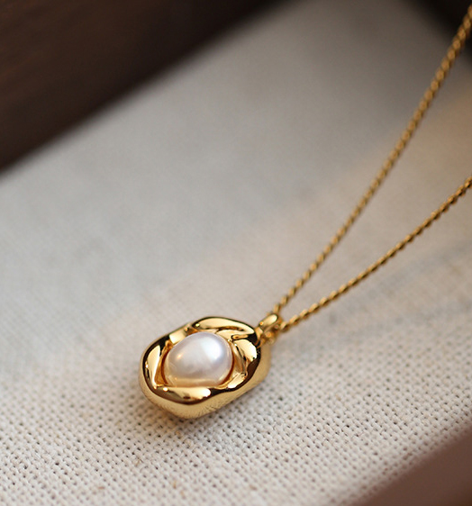 轻奢风镀18K真金天然珍珠吊坠黄铜项链