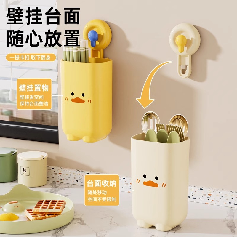 吸盘筷子收纳盒厨房大容量勺子刀具收纳架免打孔壁挂沥水筷筒筷笼